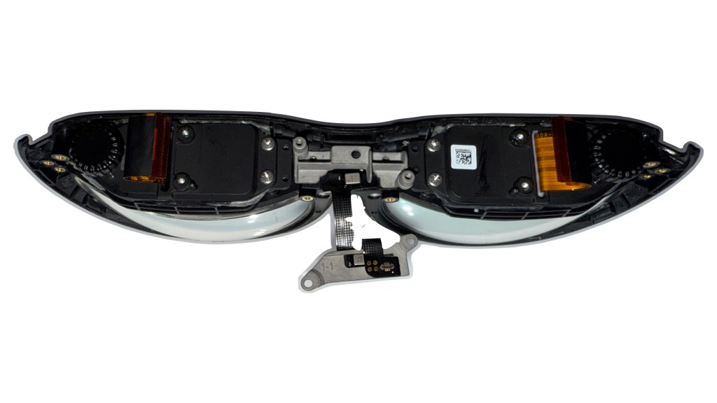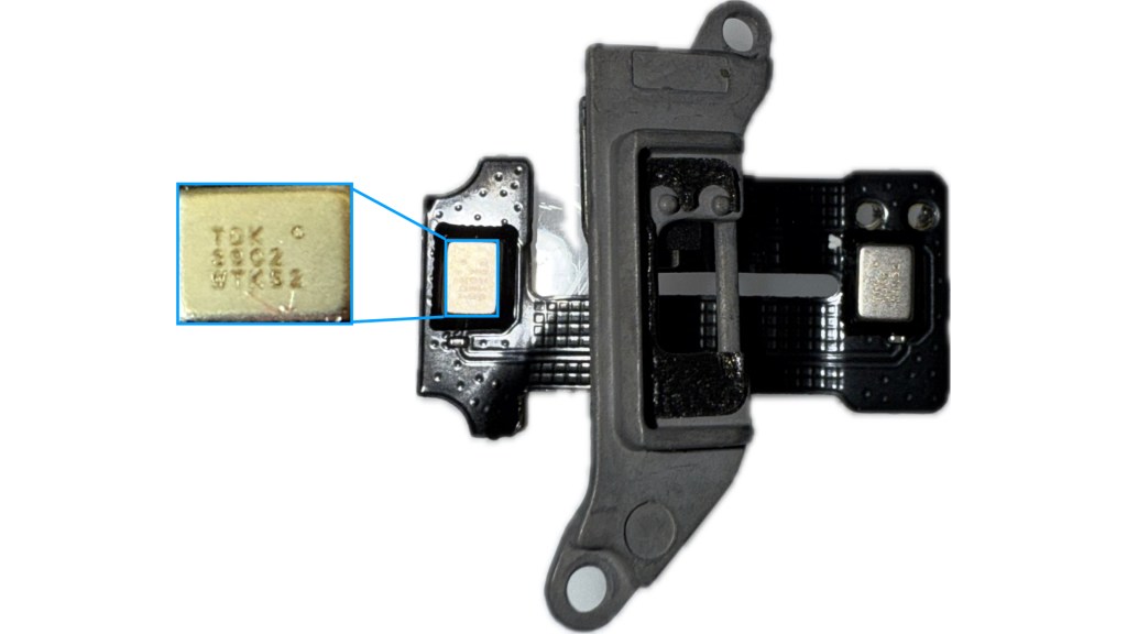 On the right temple, it’s an even emptier volume with just the right audio module connecting into a small flex PCB that routes back to the main PCB to receive power for the components in this temple.