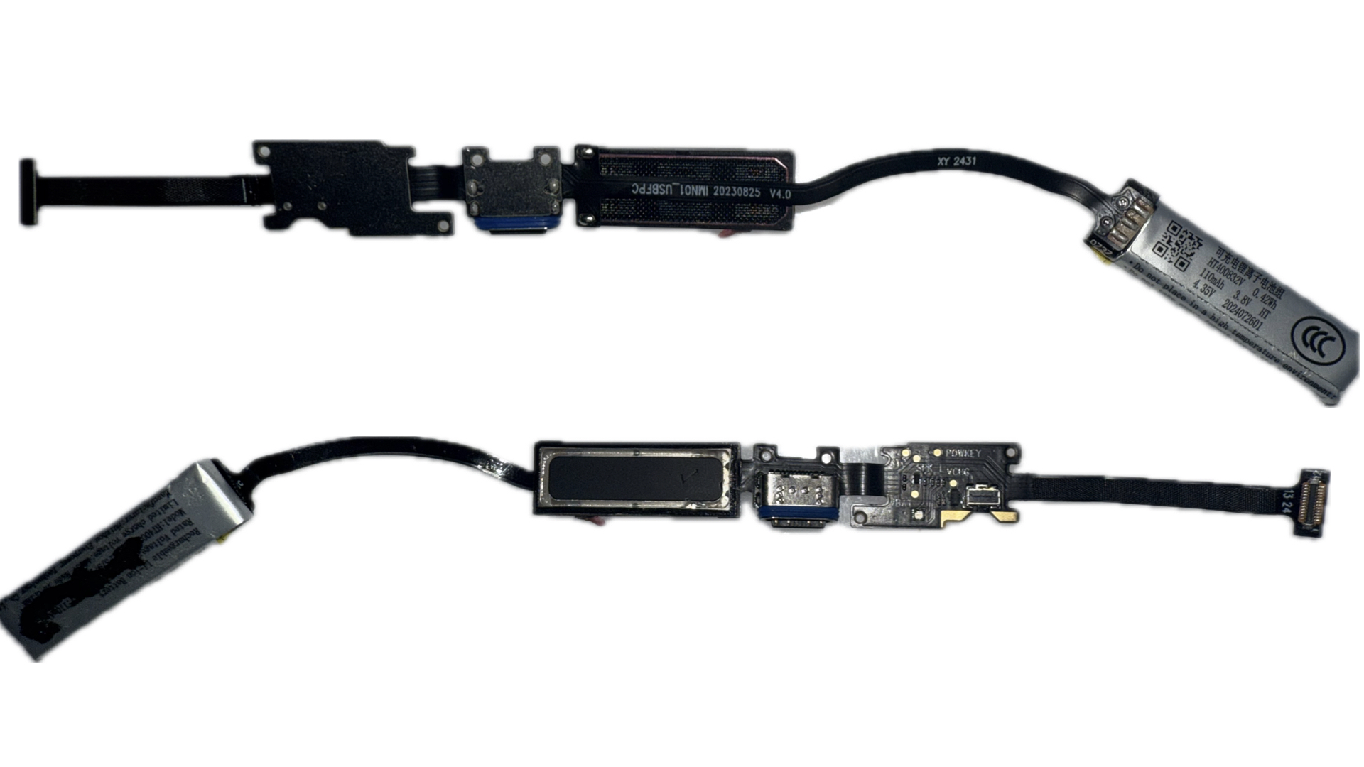 As we move to the temples, we finally start seeing the big selling point of these devices – batteries! At the rear end of each temple we have a 0.42Wh / 110mAh battery pack from a battery vendor I’ve not heard of before called Huizhou Everpower Tech. Admittedly I’ve never designed and sourced batteries, so who knows… maybe they’re a big leader in the industry outside more name-brand battery suppliers like CATL. In total, we have 220mAh of usable battery capacity, which for a highly efficient monochrome green, monocular display is more than enough for a full day of use. Especially when all processing is done on your phone (or in my case, an iPad…)