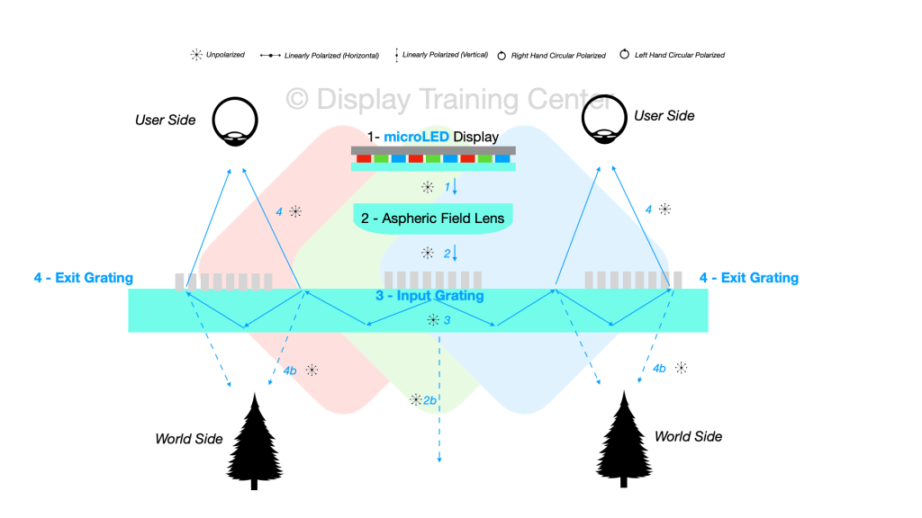 Double-image aside, this design is very impressive and most importantly cost effective from a display panel perspective – what is still to be determined is whether the increased waveguide cost (since panelization is worse for these large ones vs. 2x small ones, as well as bigger yield hits when a waveguide is mis-printed…) offsets all the gains from fewer panels procured, fewer alignment steps, etc.