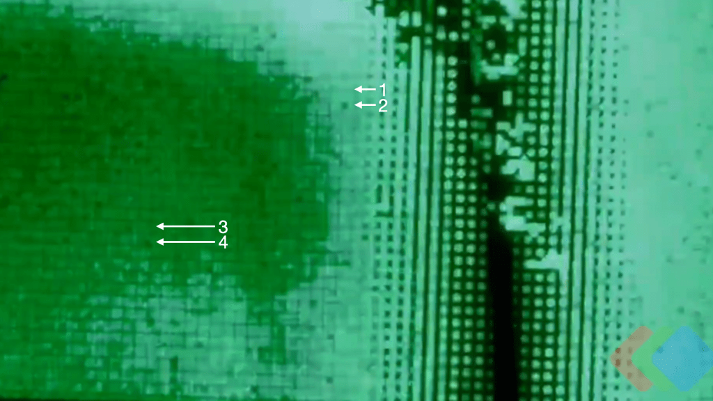One thing I note in the video is the visible non-uniformity of the display pixels – it’s a poorly kept secret in the industry that microLED panels can have very noticeable pixel-level brightness variation, even after uniformity compensation algorithms and overall brightness reduction measures have been put in place. Since the majority of the UI is sparse in nature, you generally can’t tell unless you are at the minimum brightness setting (where even single pixel lines become noticeably non-uniform…) If you end up using the photo review feature, you can see how adjacent pixels that are equal captured brightness may get driven to a similar brightness, but appear noticeably different to the eye – see pixels 1 vs 2, and 3 vs 4. I know JBD has some newer panels with embedded demura options, but these seem to be the older panels where this isn’t the case…